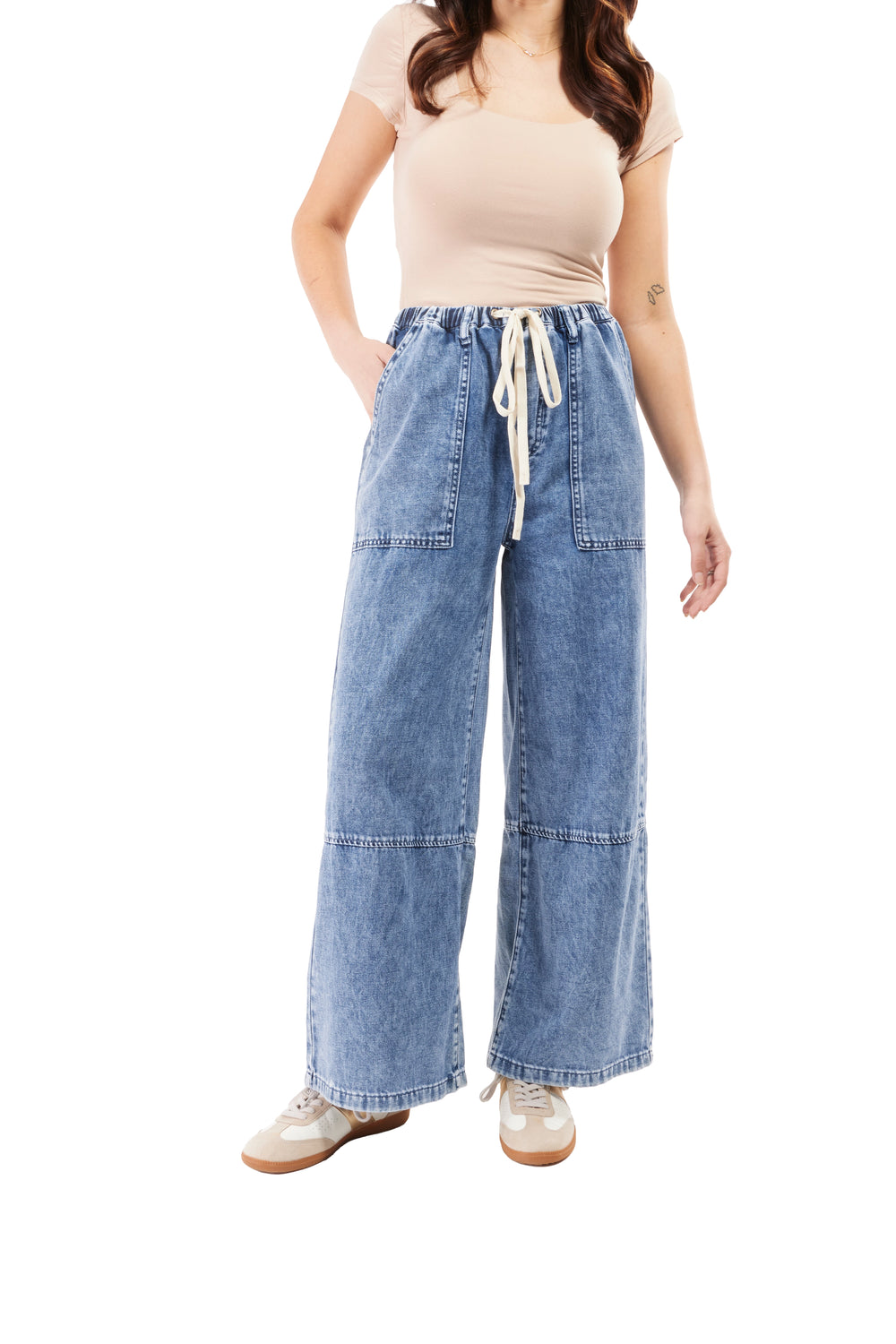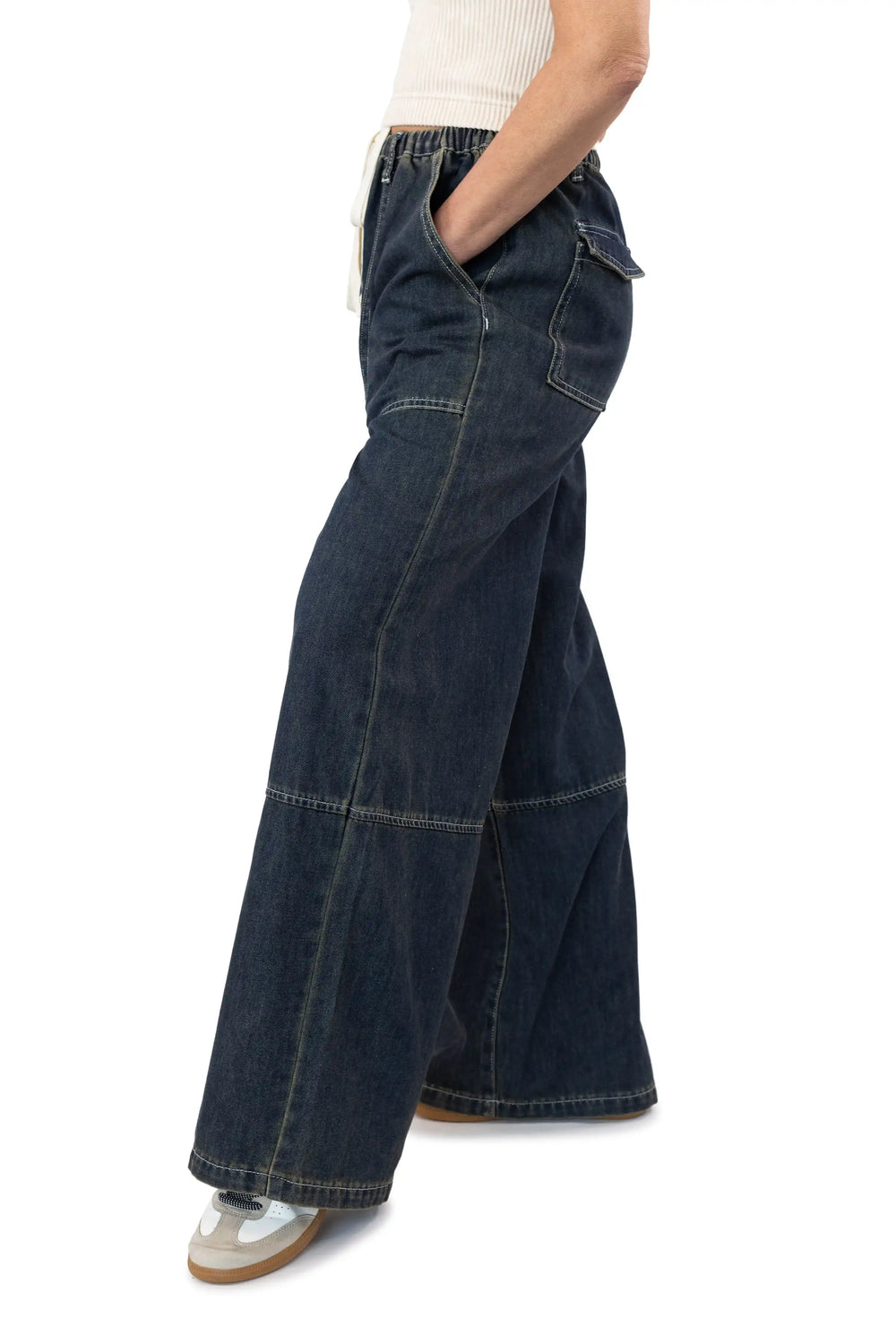 Unleash effortless style with our Women's Denim Drawstring Pants by Listicle! The drawstring waistband and wide leg provide a comfortable, customizable fit, while the oversized pockets make it easy to carry your essentials. Made from durable denim fabric, these pants are perfect for any casual occasion. Upgrade your wardrobe today!