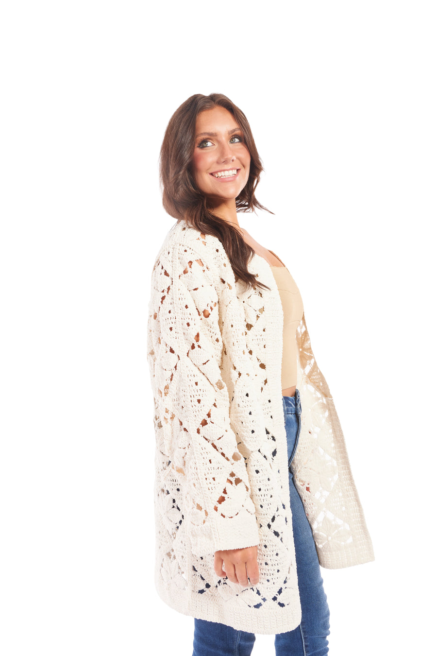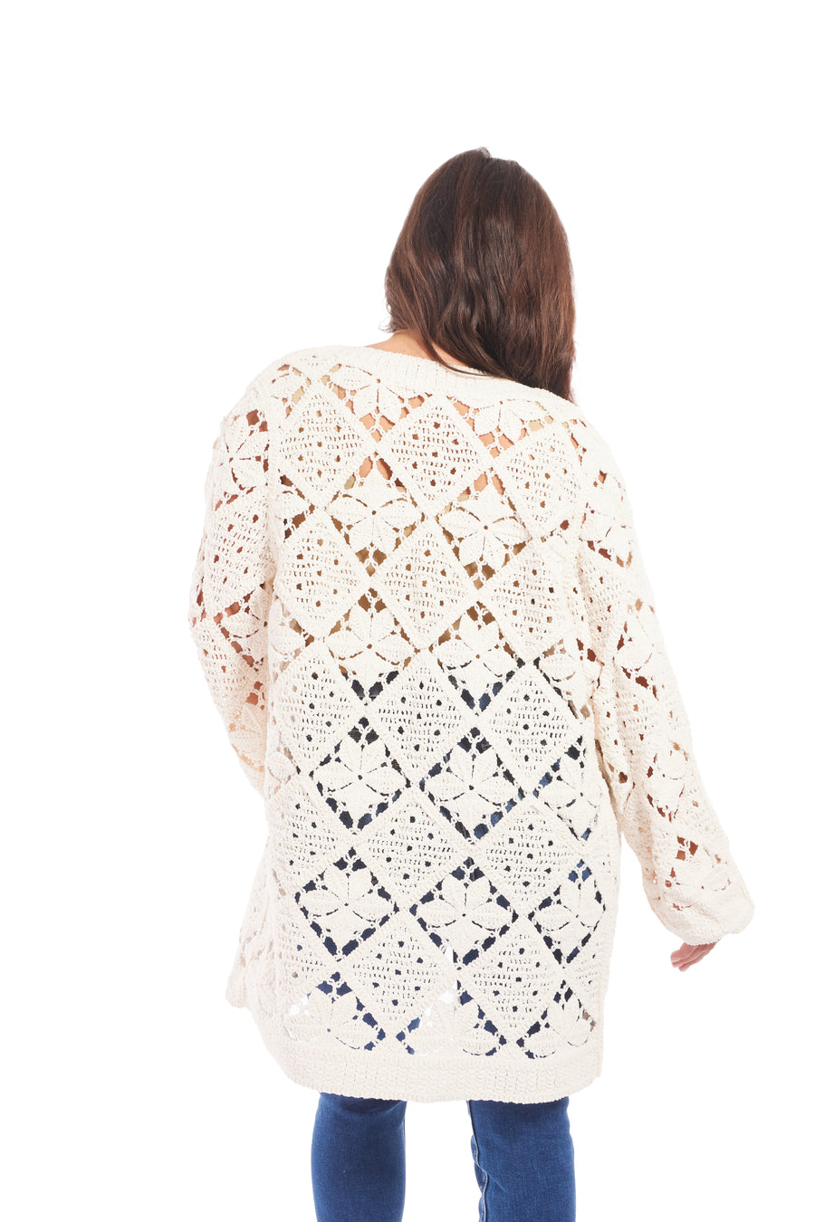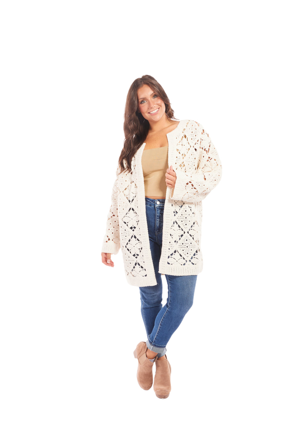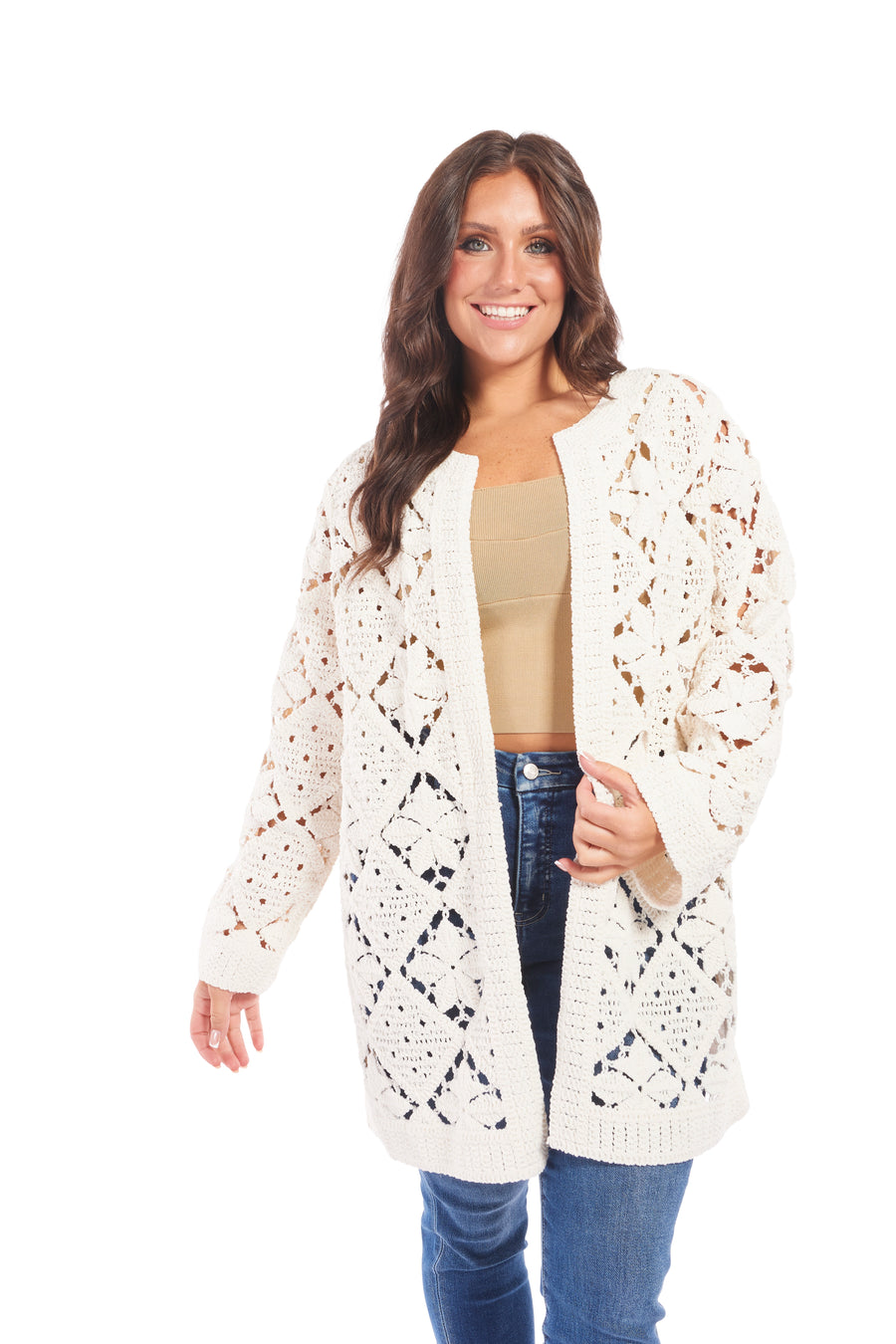 Women's Diamond Pattern Open Knit Crochet Cardigan