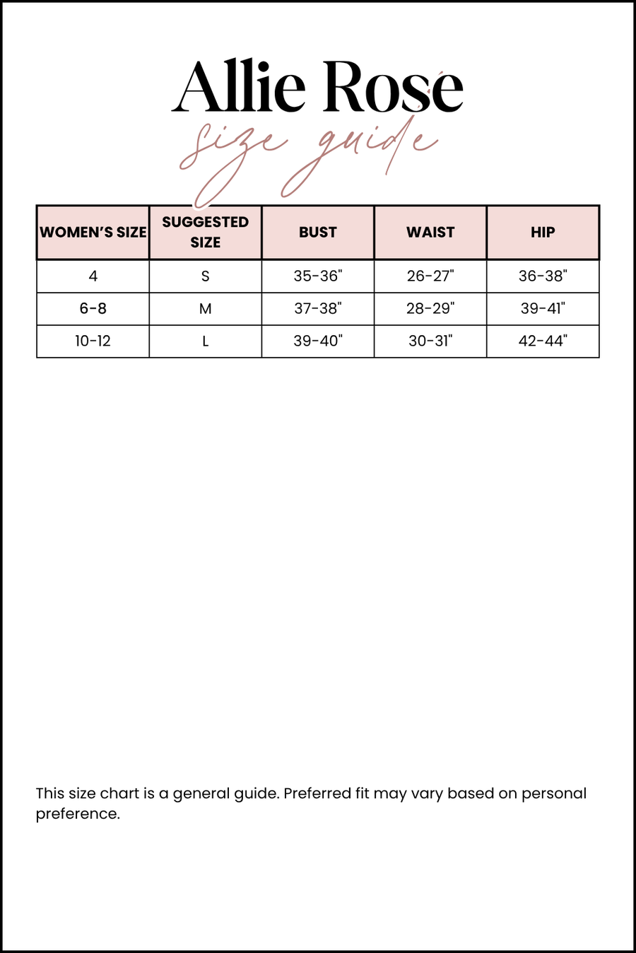 Size Guide: S: 0-4 M: 6-8 L: 10-12
