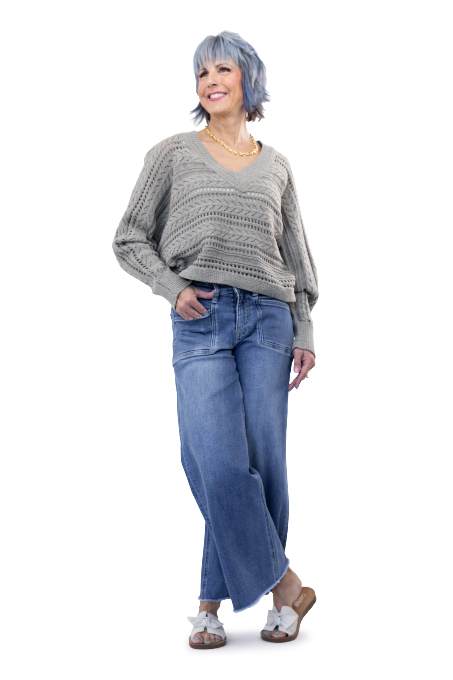 Elevate your fashion game with our Women's Dolman Sleeve Crop Sweater from Hem & Thread! Made with an open crochet knit and a flattering V-neck, this sweater is perfect for anyone. It's the perfect balance of comfort and style, making it a must-have addition to your wardrobe.