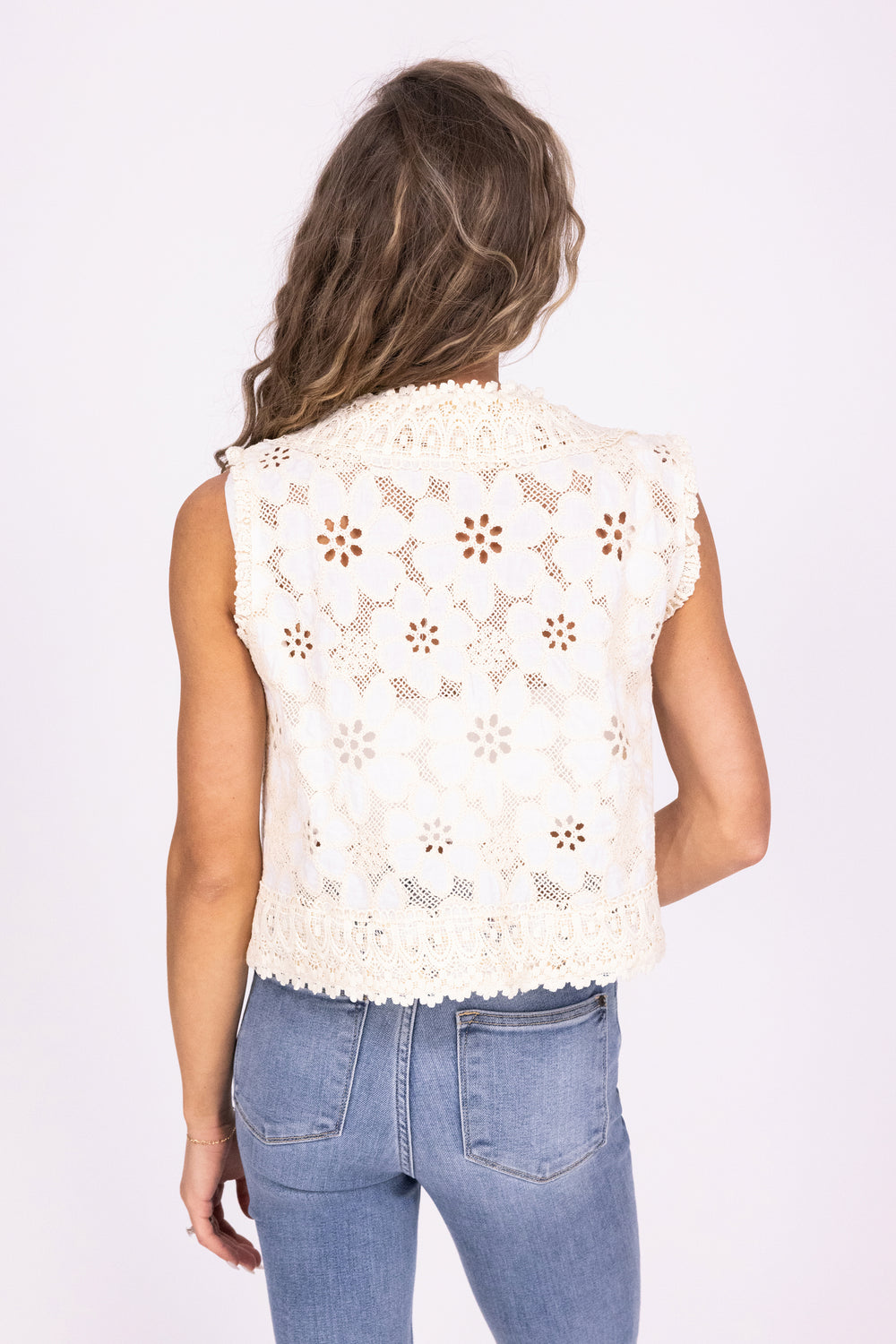 Elevate your boho style with our Women's Floral Lace Button Up Vest! Made with delicate floral lace crochet and functional round buttons, this vest adds a touch of femininity to any outfit.