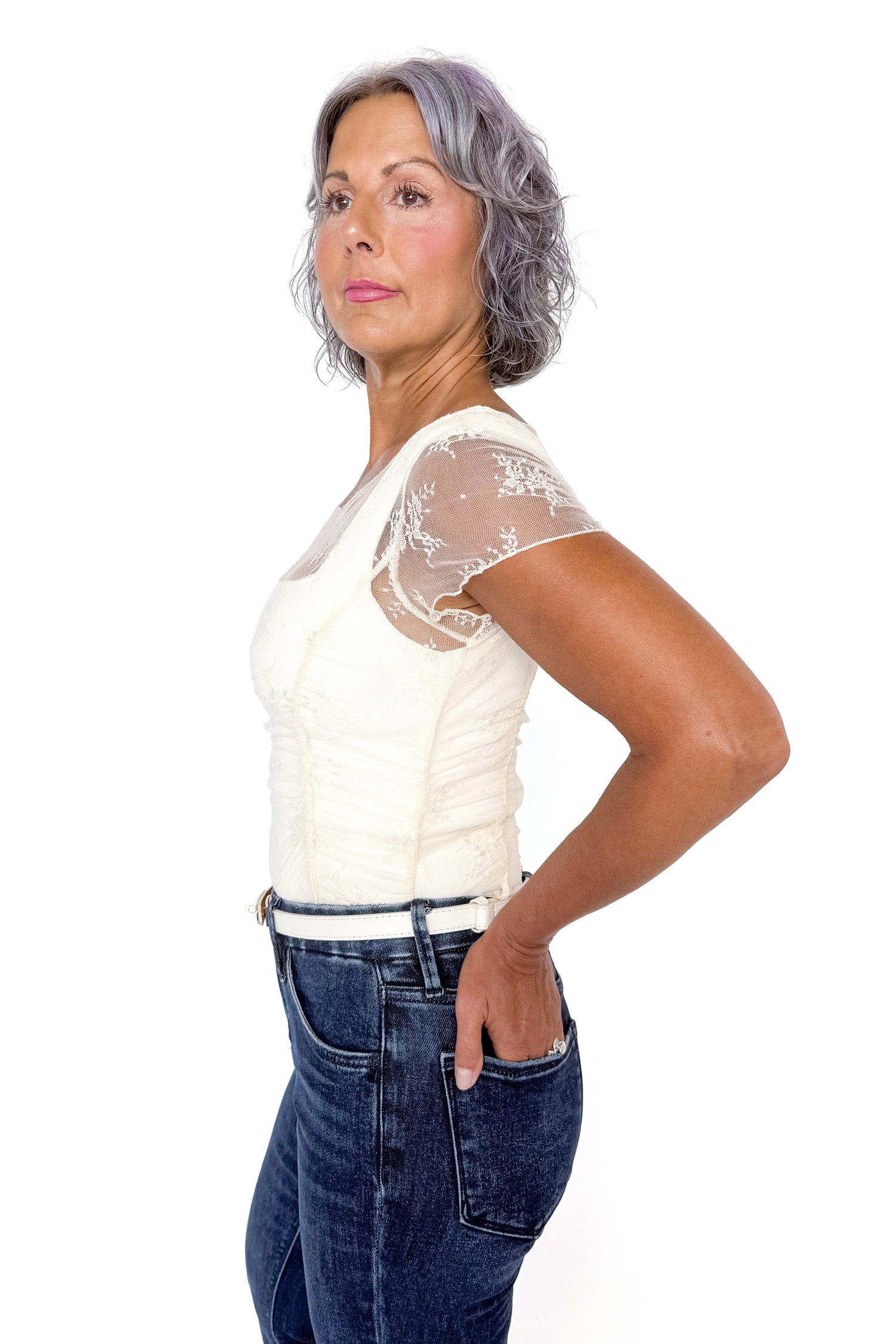 Rock this floral mesh short sleeve shirt from Listicle for an effortlessly cool look! The sheer material adds a touch of edginess to your wardrobe, while the floral lace print keeps it feminine. The ruching and scalloped hems add the perfect finishing touch to any outfit. Layer this top over your favorite tank top to make it perfect for a casual day or a fun night out!