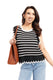 Women's Lightweight Stripe Cap Sleeve Knit Top- Black & Ivory