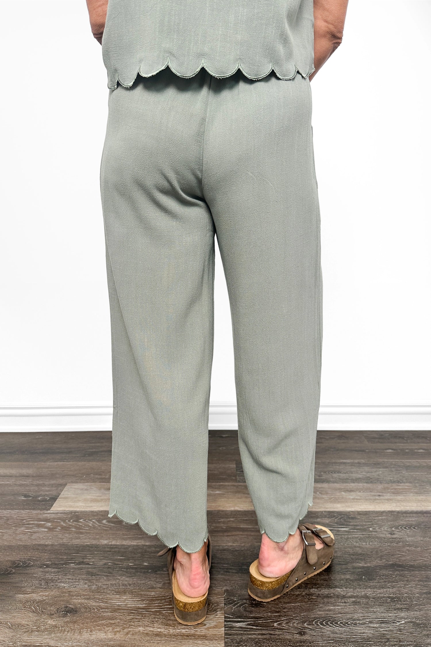 Experience the perfect blend of comfort and style with these Women's Linen Blend Scalloped Hem Pants from Allie Rose. The luxuriously soft linen blend fabric drapes beautifully while keeping you cool and comfortable throughout your day. A charming scalloped hem creates visual interest and sets these pants apart from your everyday basics. The elastic waist offers a fit that adapts to your body, eliminating uncomfortable waistbands. Deep, functional pockets let you carry your phone, wallet, and keys with ease. Versatile enough for weekend adventures or casual office days, these pants are an essential addition to any wardrobe.