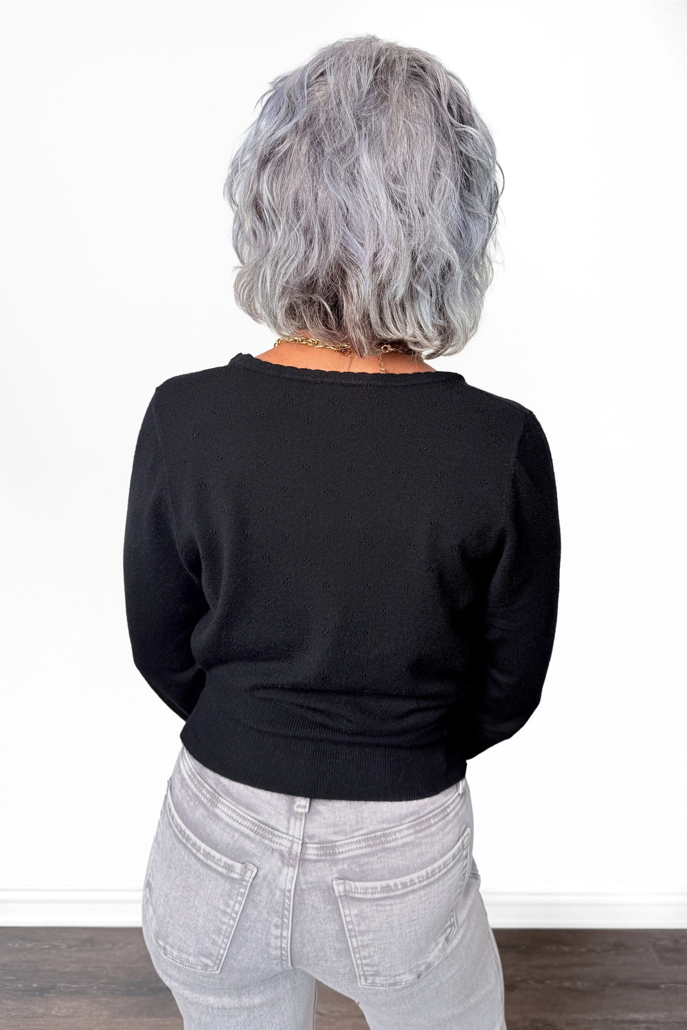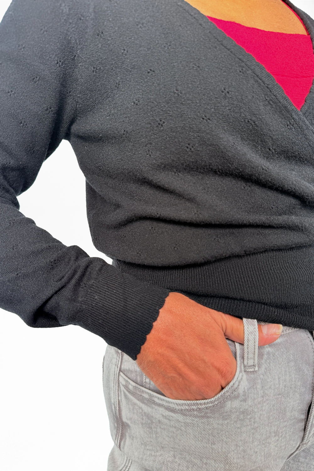 Women's Pointelle Scallop Trim Cross-Over Sweater
