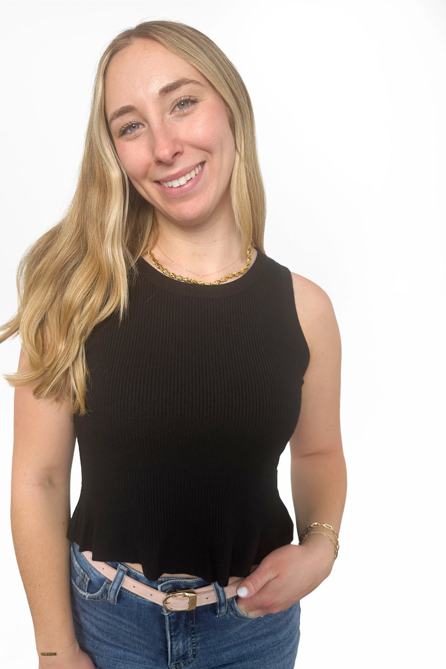Women's Ribbed Knit Peplum Sweater Tank Top