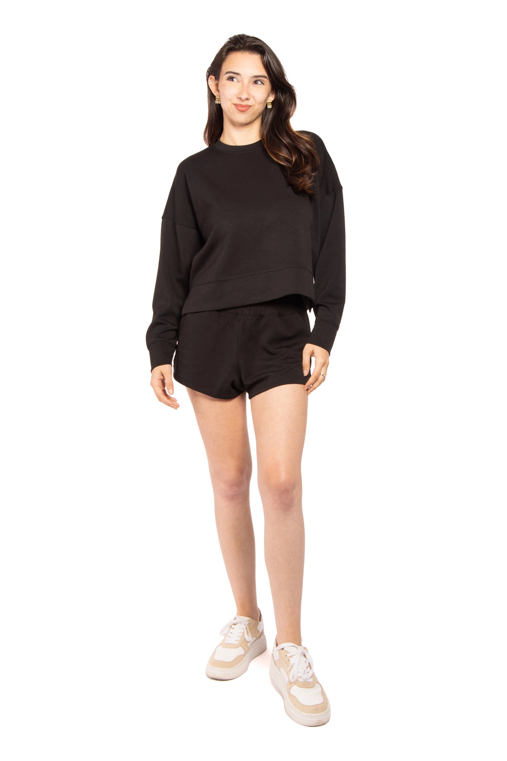 Experience ultimate comfort and style with our Women's Scuba Sweatshirt and Shorts Set from Zenana. The long-sleeve sweatshirt provides cozy warmth while the shorts feature a forgiving elastic waistband that moves with you. Convenient pockets add practical functionality to this fashionable duo. Crafted from premium scuba fabric that maintains its shape throughout the day, this set delivers the perfect relaxed fit for all day comfort.