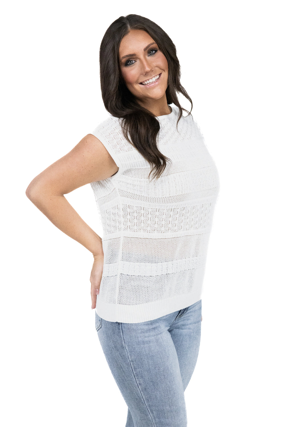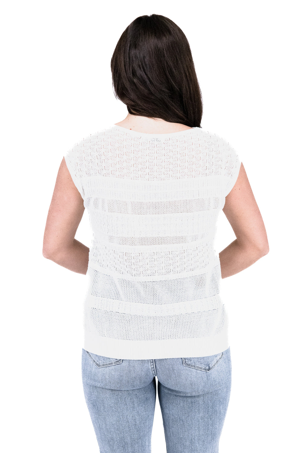 Elevate your summer style with our Women's Sleeveless Crochet Short Sleeve Top by Staccato! Featuring a wide crew neck and intricate crochet design, this top is perfect for any occasion. Stay cool and comfortable while making a statement with this must-have piece!