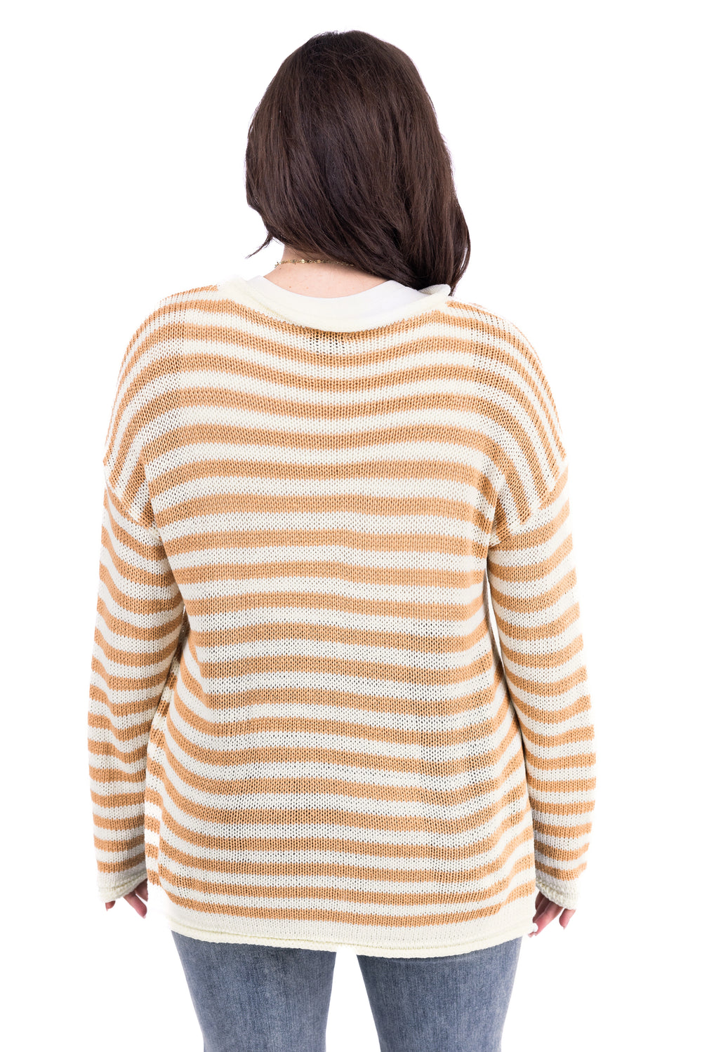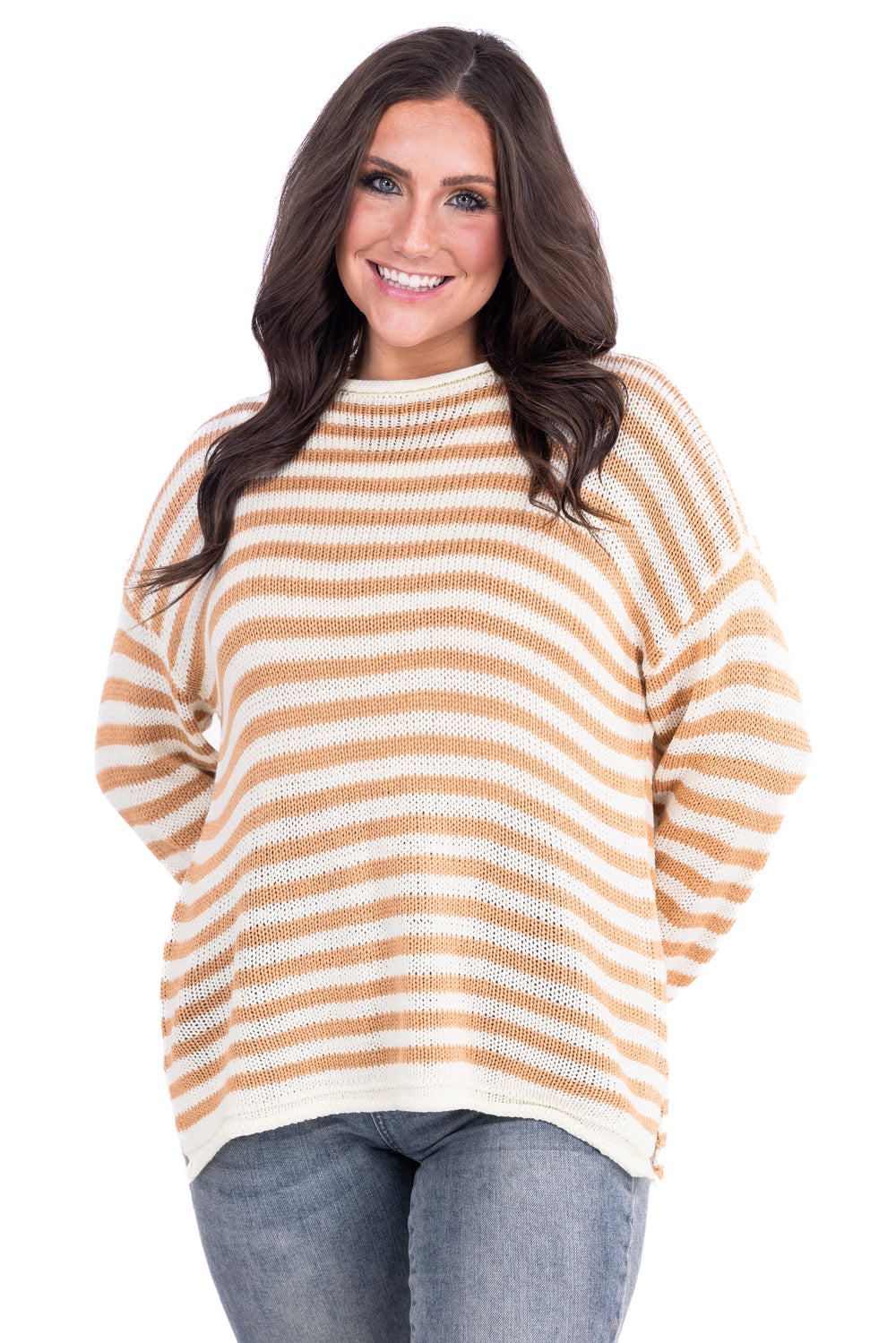 Step up your style game with this Striped Knit Long Sleeve Top from White Birch! Made with a soft knit fabric, this top features trendy stripes and a flattering long sleeve silhouette with side slits. The hems and sleeve cuffs also feature a rolled edge with a textured knit that completes the look. Perfect for pairing with your favorite denim or leggings, you'll stay cozy and fashionable all day long.