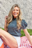 Elevate your wardrobe with our Women's Striped Knitted Top by Listicle! Made from luxurious knit fabric, this top features stunning puff sleeves and a flattering ribbed hem. Perfect for any occasion, this top will add a touch of elegance and style to your look. Don't miss out on this must-have piece!