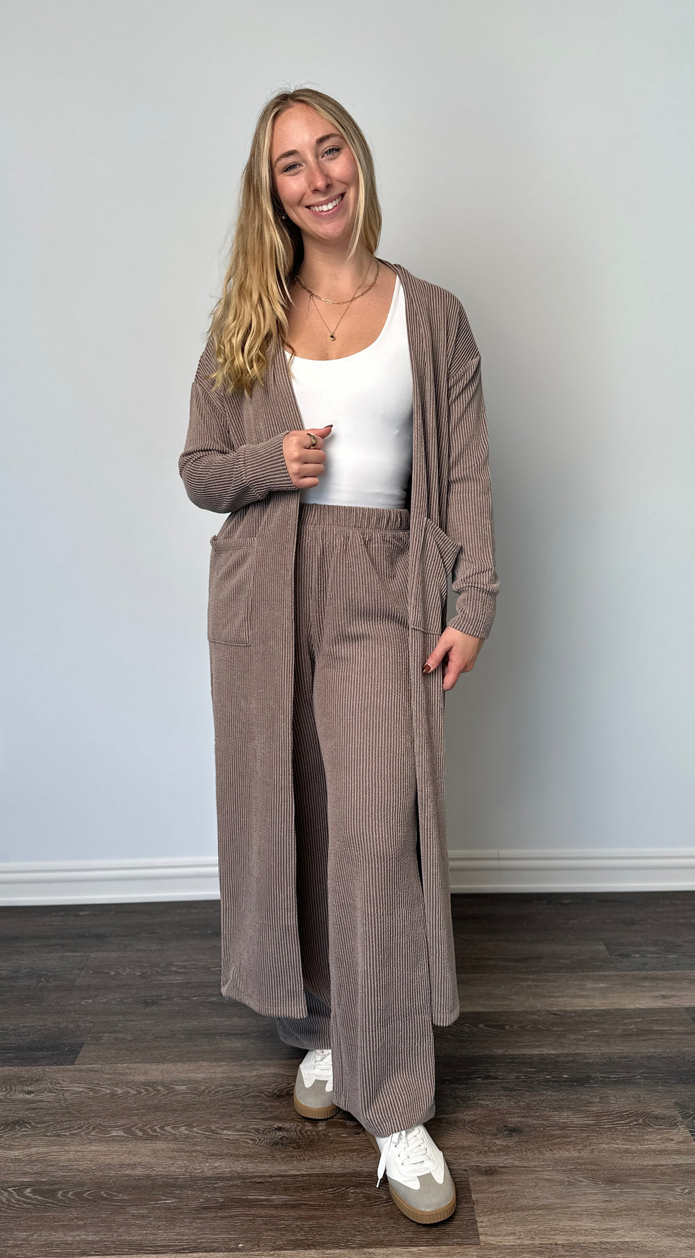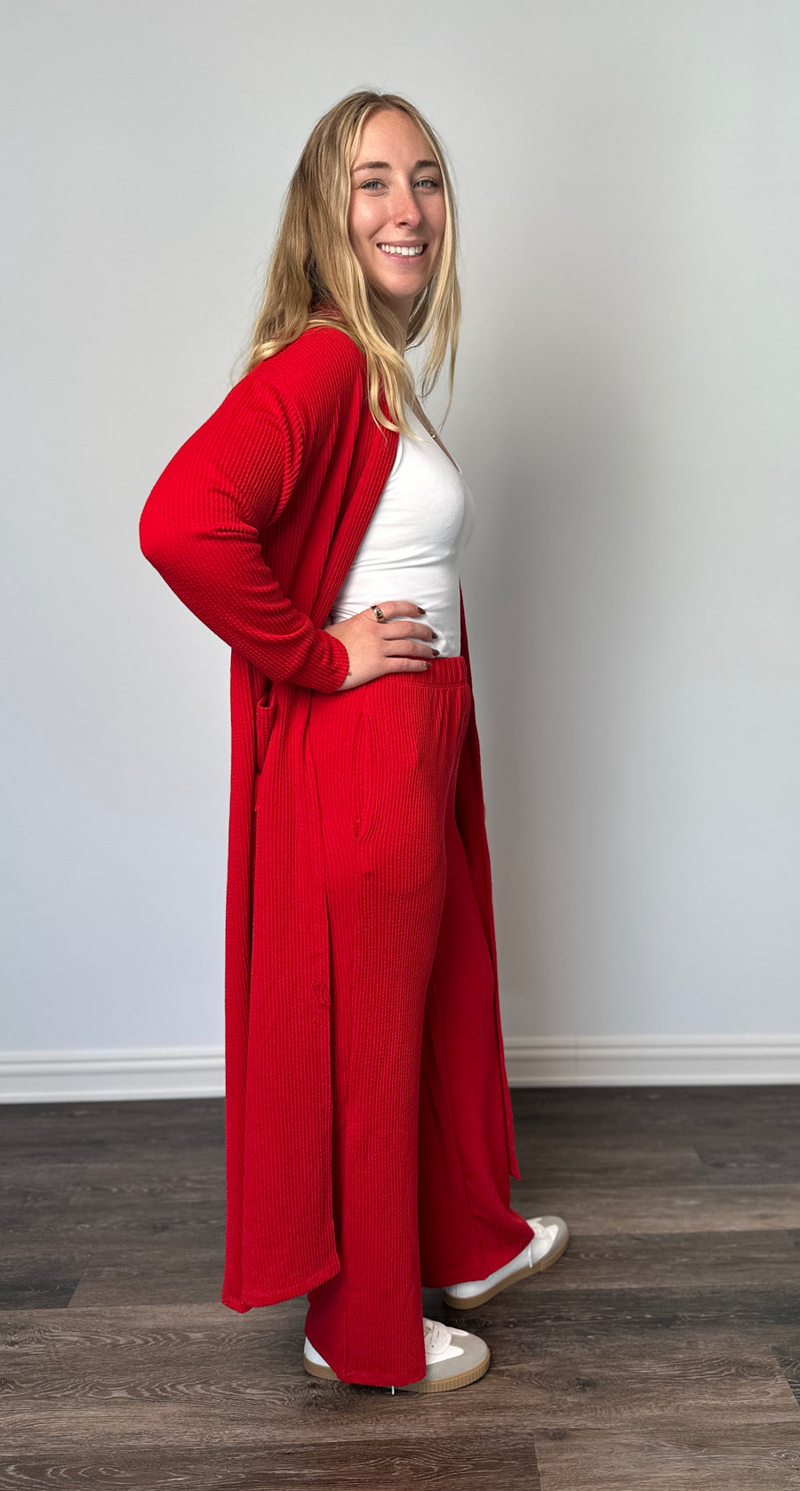The Women's Sunrise 2-Piece Set by Dear Scarlett blends effortless elegance with everyday comfort. This stylish set includes A flowy, longline cardigan that adds graceful movement and a flattering silhouette, and a high-waisted, relaxed pants designed for comfort and ease throughout the day. Made from soft, stretchy fabric that moves with you, the Sunrise Set offers a perfect balance of comfort and polish—ideal for lounging at home or stepping out in style.