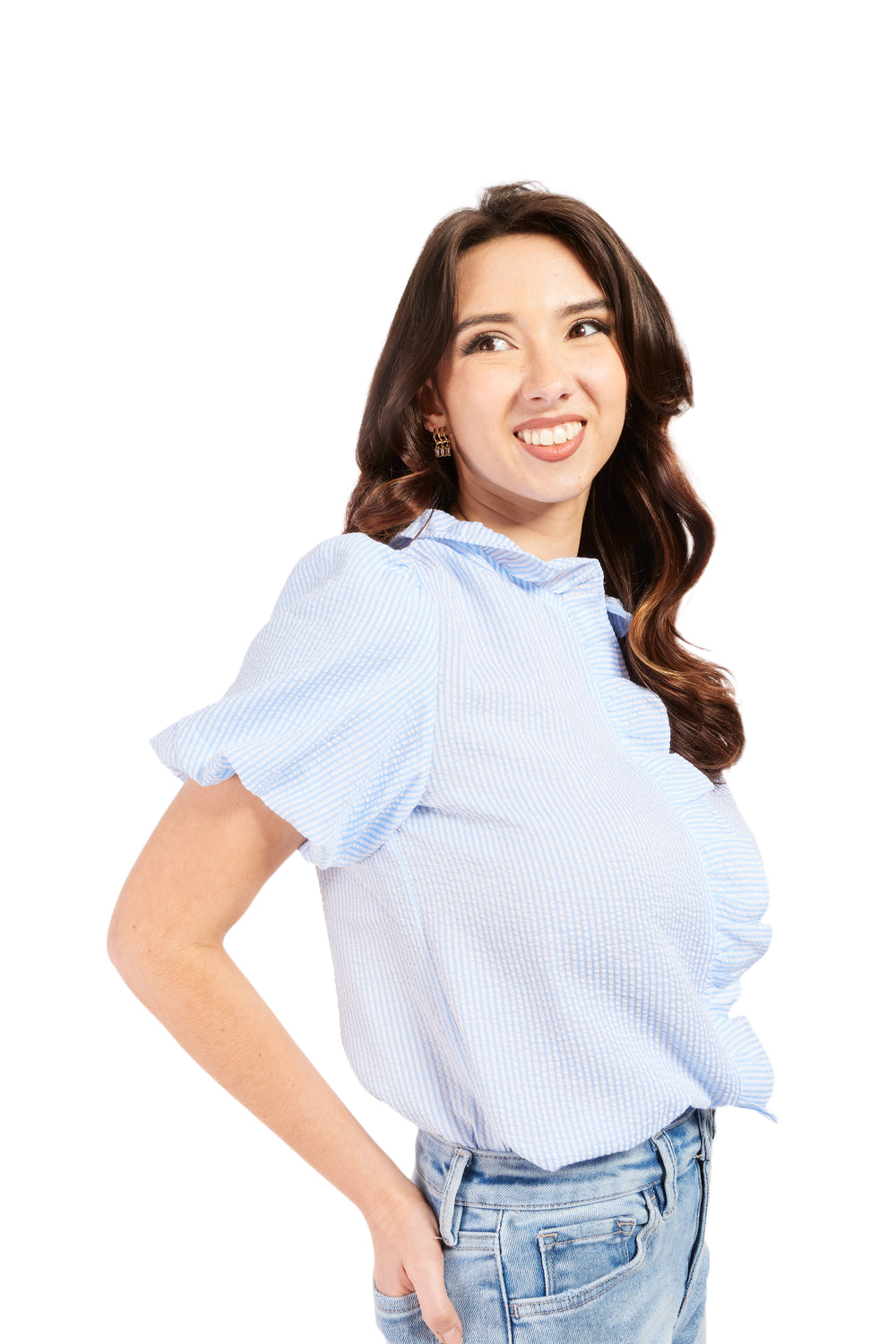 This Women's Textured Ruffle Sleeve Top from Aapparella is the perfect addition to your wardrobe. With its cute button-up design and trendy striped pattern, you'll feel stylish and put-together. The ruffle sleeves add a touch of femininity to any outfit.