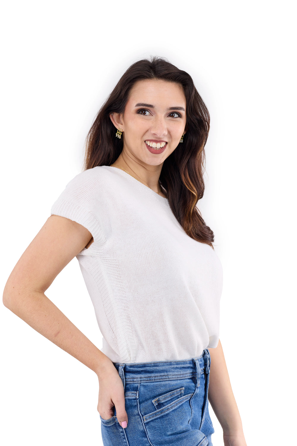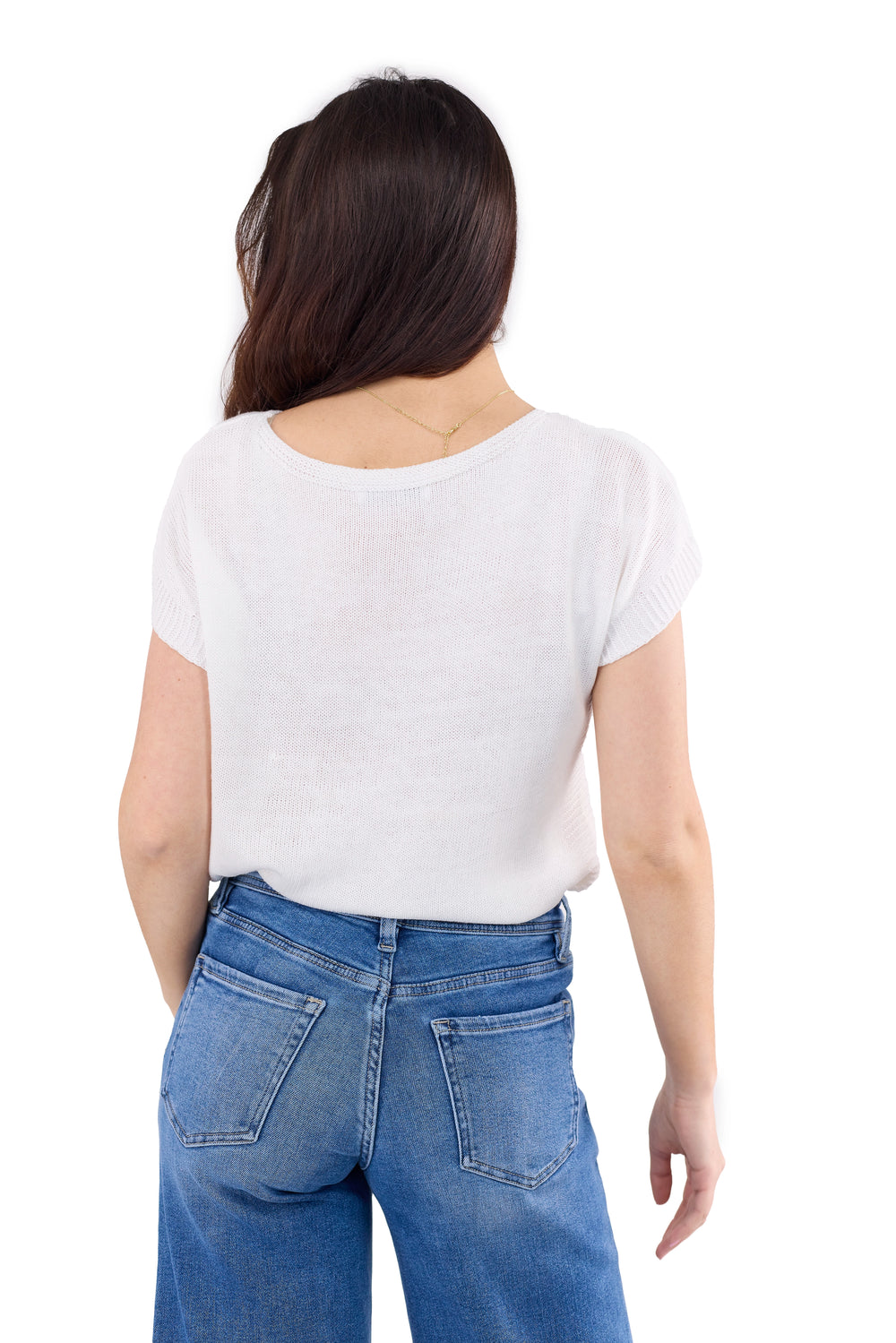 This Textured Short Sleeve Sweater from Staccato is the must-have addition to your wardrobe! The ribbed hem and sleeves add a touch of personality and the crew neckline makes this a versatile piece. Say goodbye to basics and elevate your look with this sweater. Pair with your favorite denim for a cozy look!