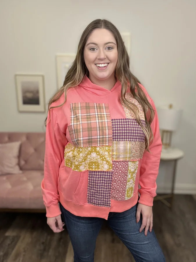 The Wonders Hoodie By Easel is truly a one of a kind beautiful hoodie! You can wear this hoodie when out enjoying time with friends or family, whatever the occasion this hoodies is sure to stand out! This hoodie features an uneven hemline, a kangaroo pouch, contrasting patch work detail and drop shoulders. The Wonders Hoodie can be paired with your favorite denim!