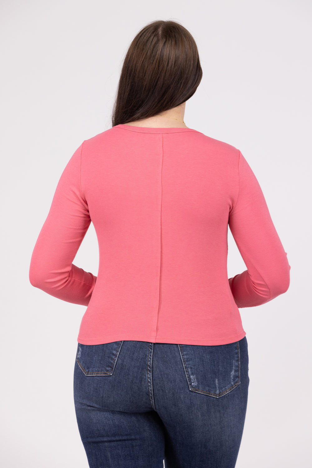 The Won't Say it Twice Long Sleeve Top by Kori is perfect for when you need to lay down the law! This top features a casual ribbed fabric, long sleeves, and a Henley style. Pair with denim, shoes, accessories, and jewelry for a look that means business!