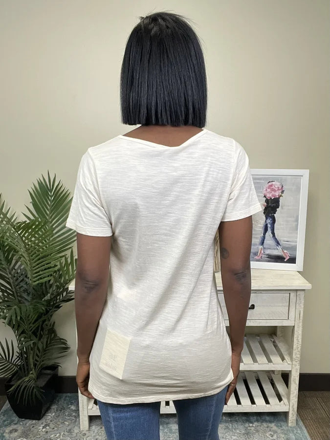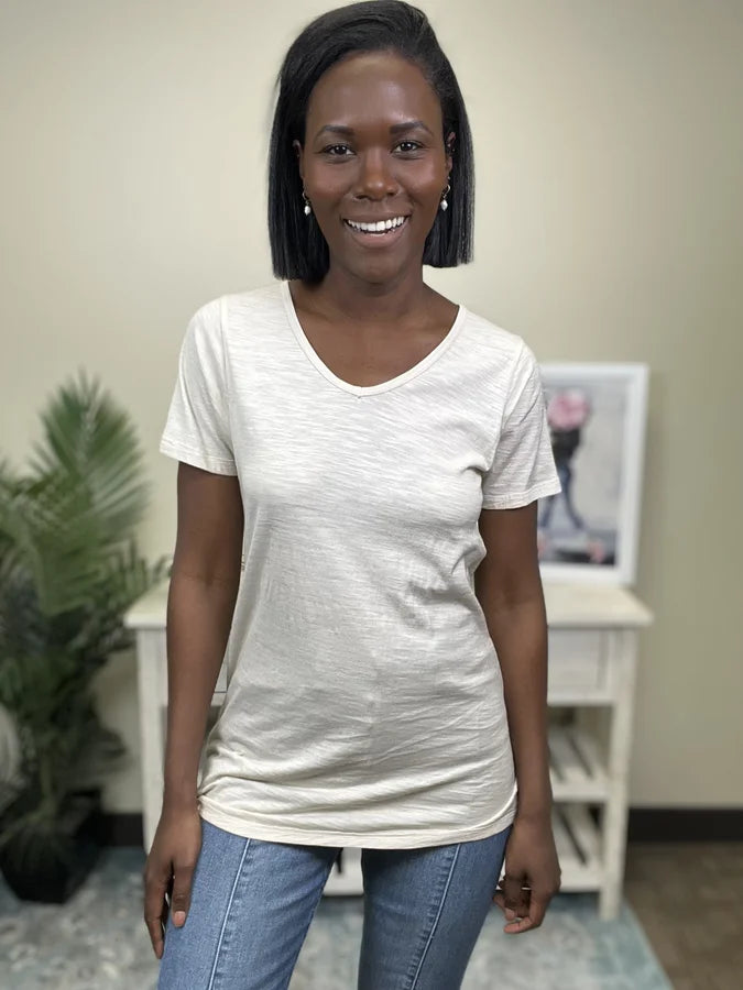 The Workout And Chill Top By Mono B is the top you need to workout and chill. This solid-colored and oh so soft tee is a versatile piece needed in every wardrobe. It features a V neckline, short sleeves, and a longer silhouette. It offers a extra soft vintaged-look CMS technology.