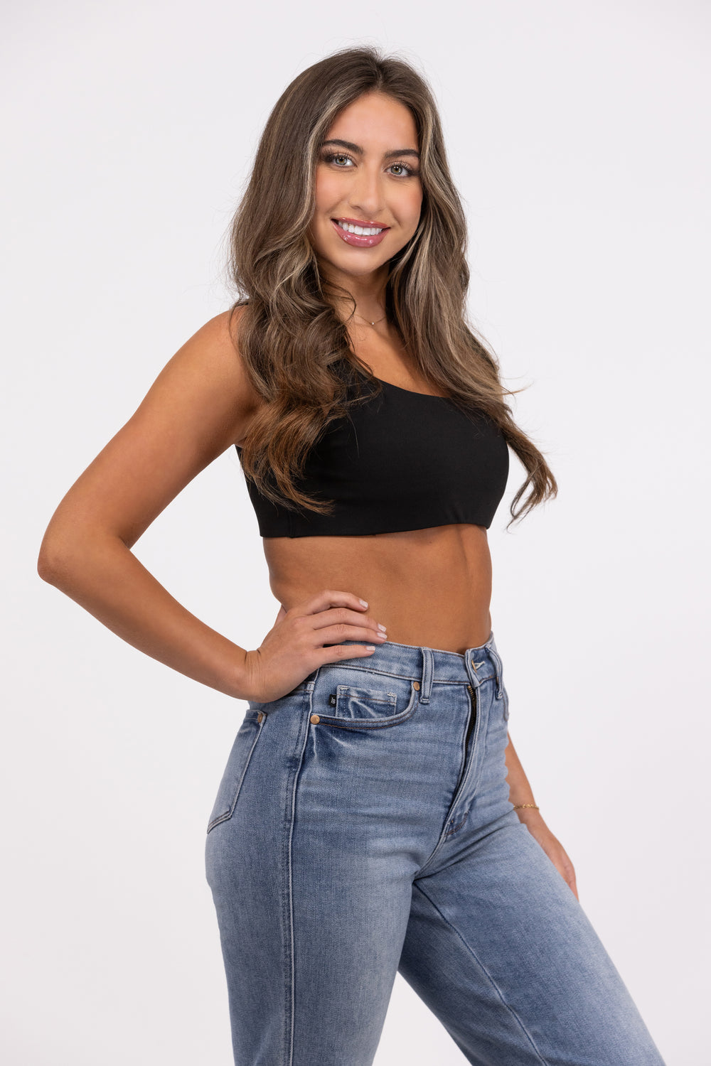 This Write The Future Sports Bra by White Birch will help you conquer your workout goals! This sports bra features a round neckline, removable bra cup pads, adjustable straps and adjustable hook and eye closure in the back. This sports bra will support you for any activity from yoga to hiking!