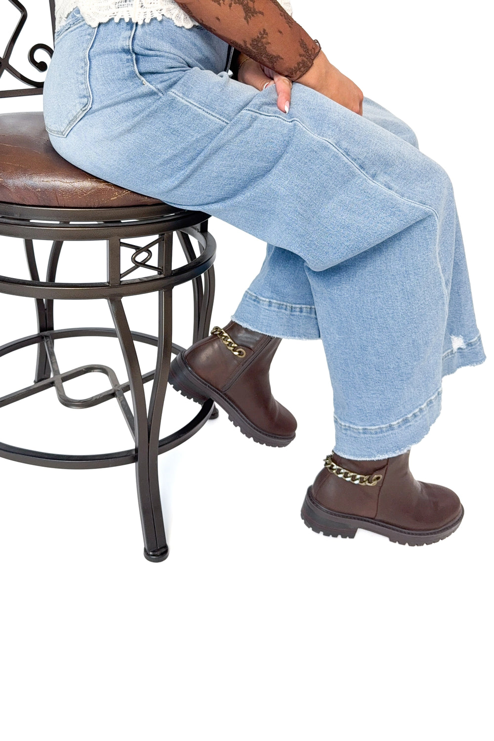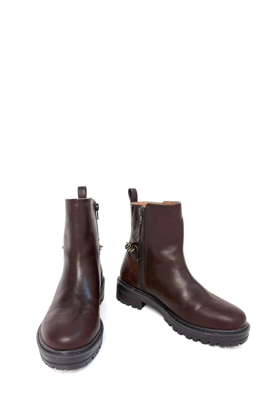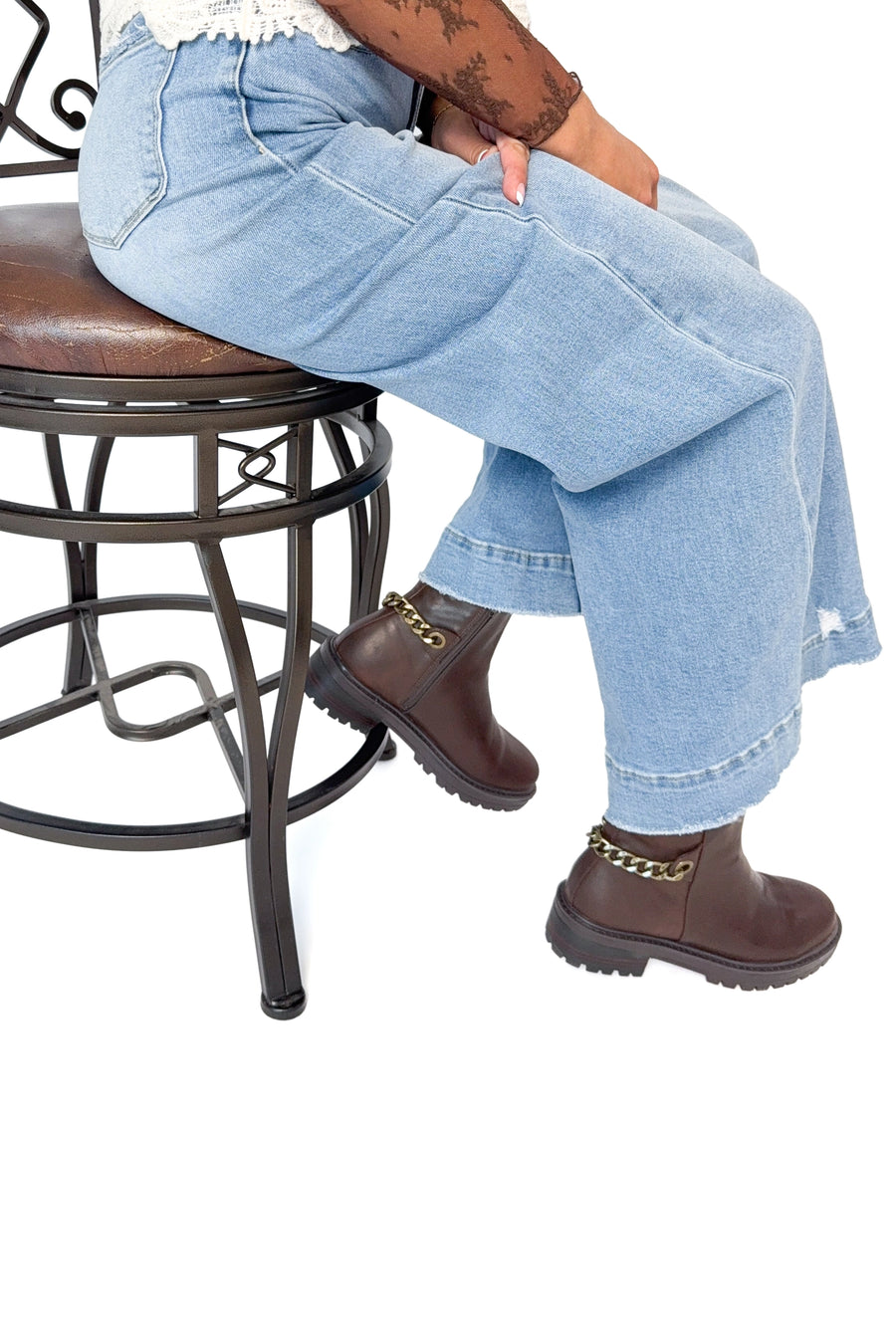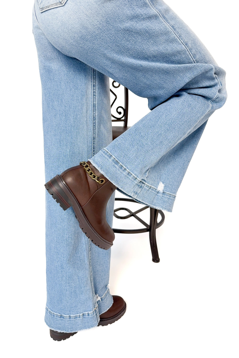 Elevate your footwear collection with the Yellow Box Adorne Combat Boot, featuring a classic combat silhouette enhanced by a feminine chain detail. The side zip closure and a 1" heel keep these boots practical and stylish. These boots deliver both durability and edgy sophistication, perfect for adding a bold statement to your everyday look while ensuring all-day comfort.