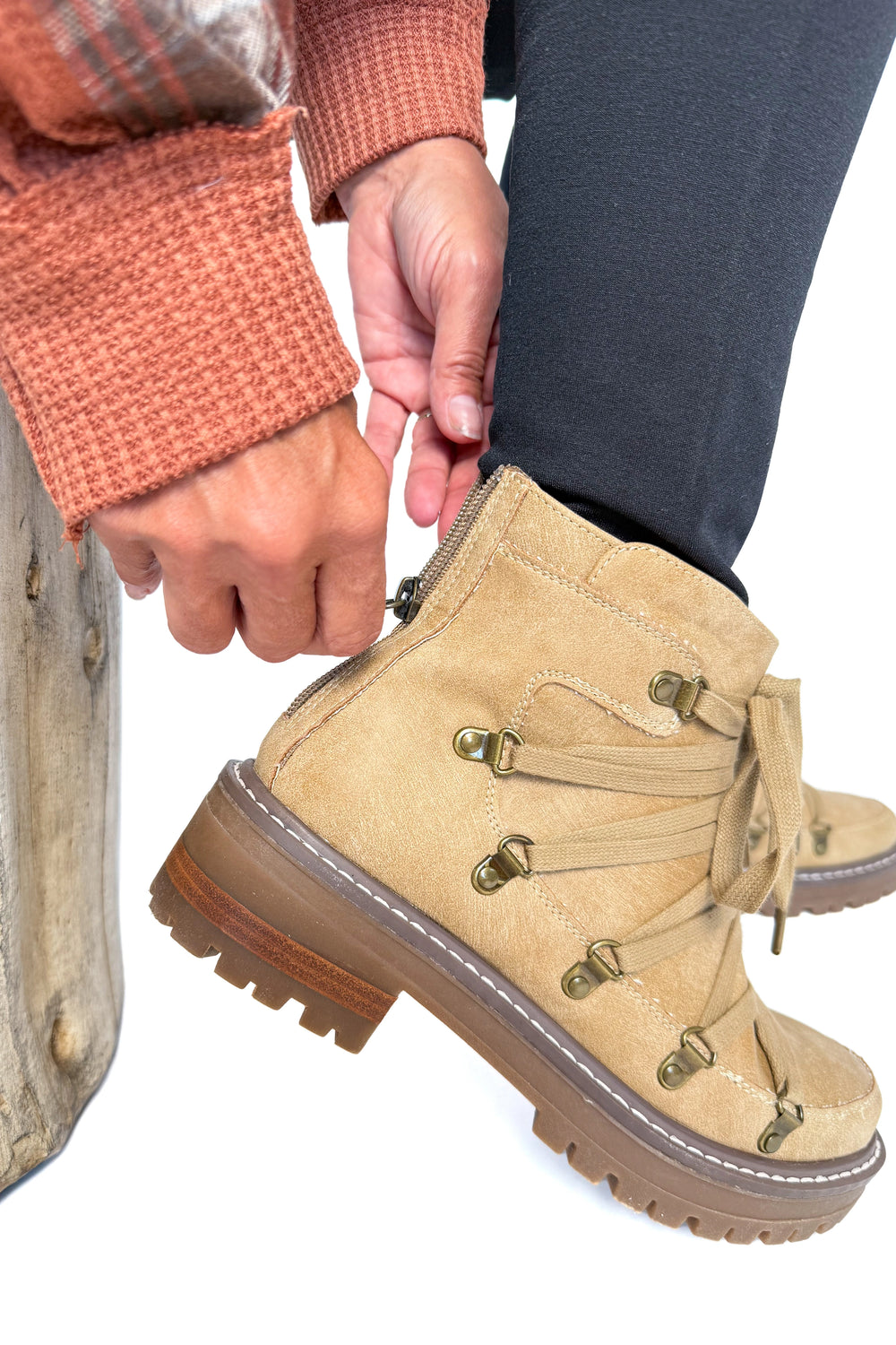 Step out in style with the Yellow Box Albina Women's Lace Up Boot. Crafted with a faux leather upper, these boots combine durability and fashion effortlessly. The lace-up design with ring eyelet accents adds a trendy edge, while contrast stitching around the sole highlights quality craftsmanship. A convenient back zipper ensures easy wear, making these boots perfect for all-day comfort and standout looks. Elevate your wardrobe with a versatile boot that blends classic charm and modern details.