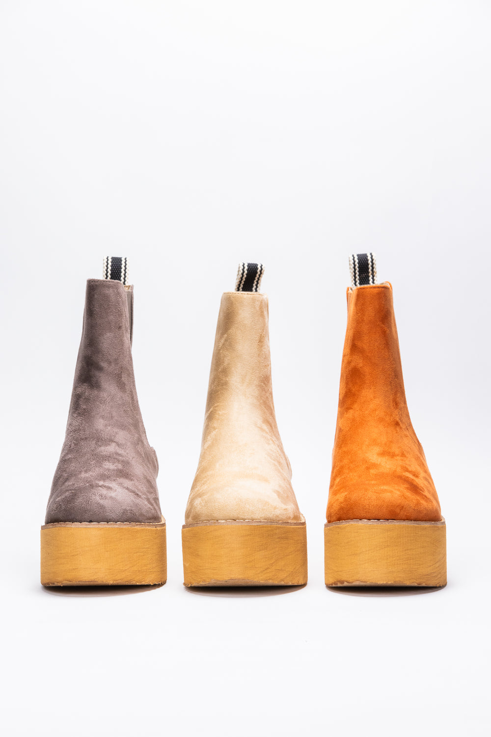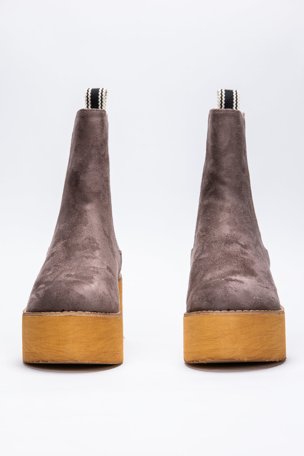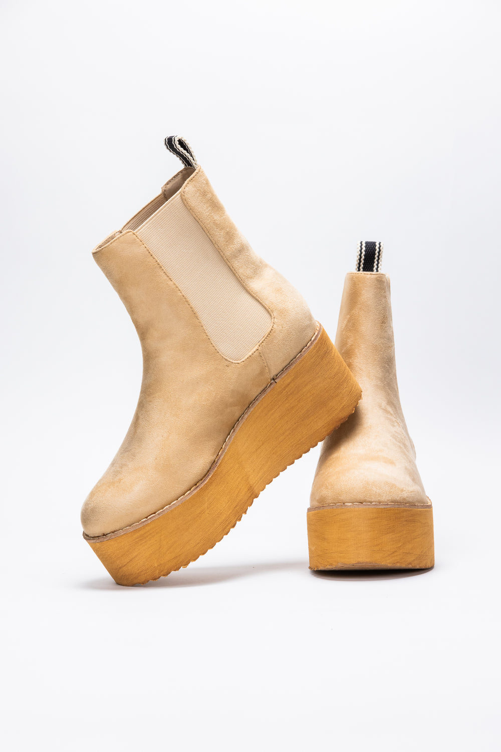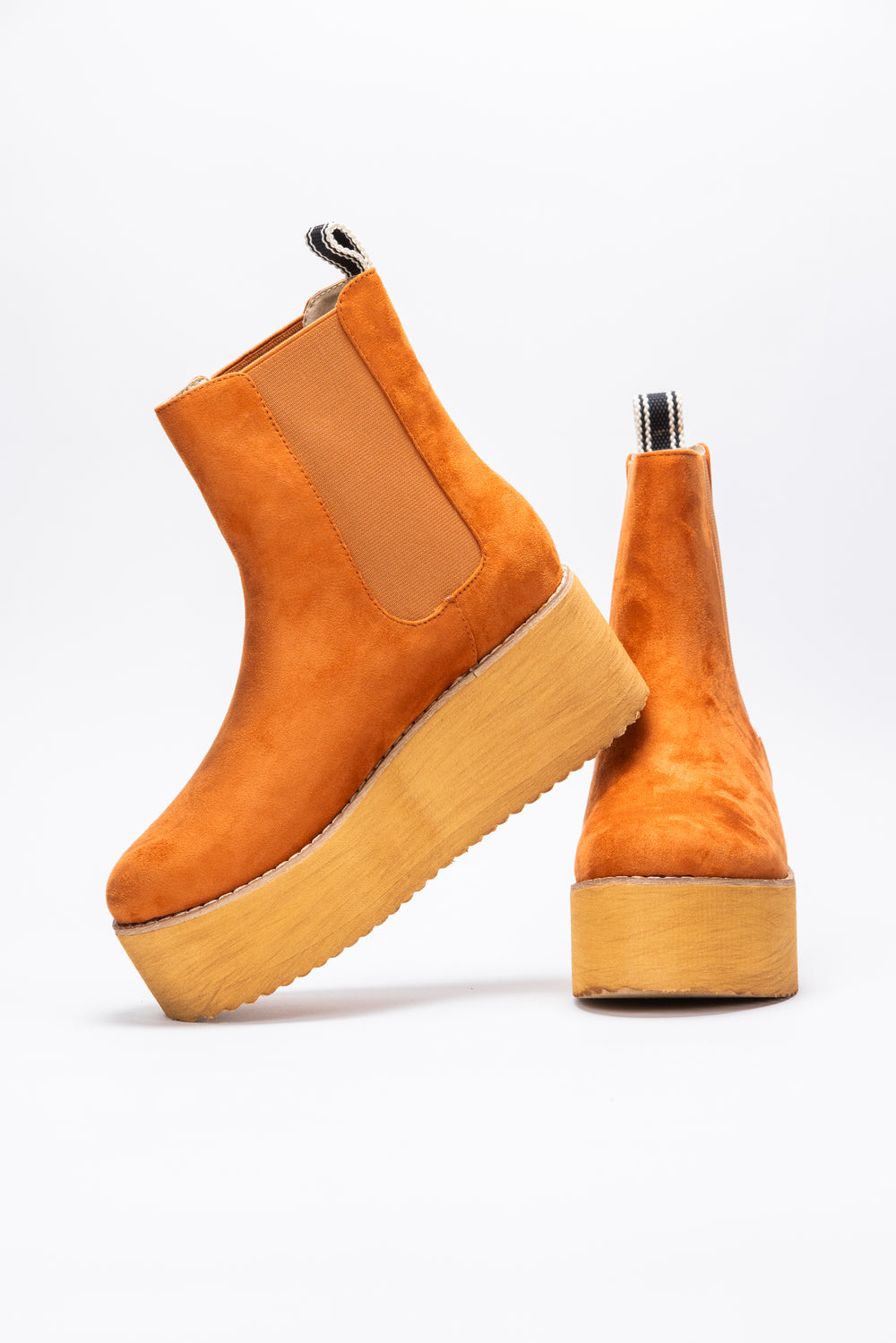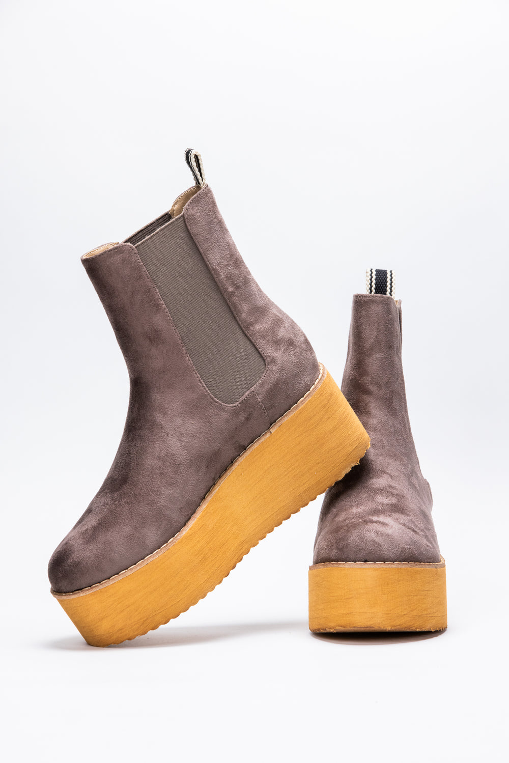 Introducing the Yoshi Boot from Shu Shop! Featuring a faux suede upper and elastic side panels for a comfortable fit, with a back pull tab for easy on and off. The faux wood platform adds a touch of style to any outfit. Step out in these playful boots today!