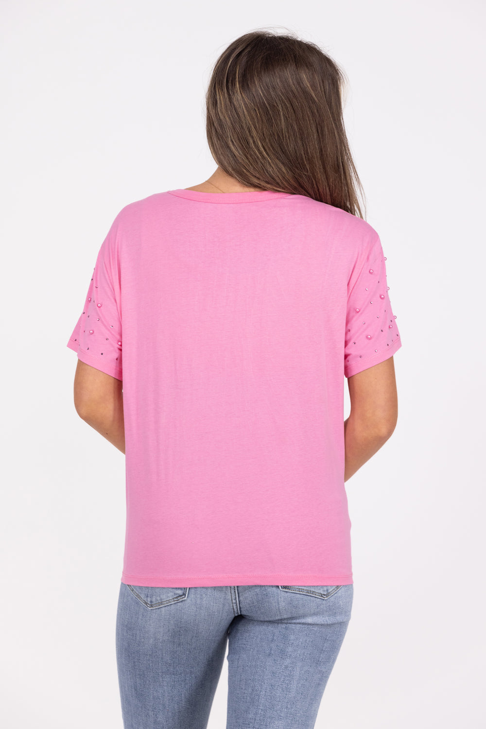 The You Will See Me Top from White Birch is the top for those who want to be the star of every show in life! This top features Pearl and gem beads, a rounded neckline, and a functional front pocket. Pair with denim and stand in the spotlight!