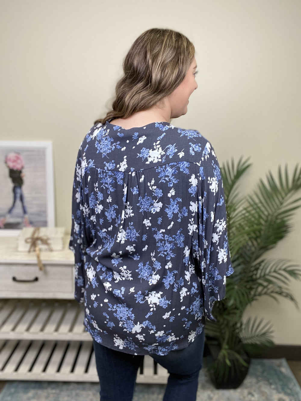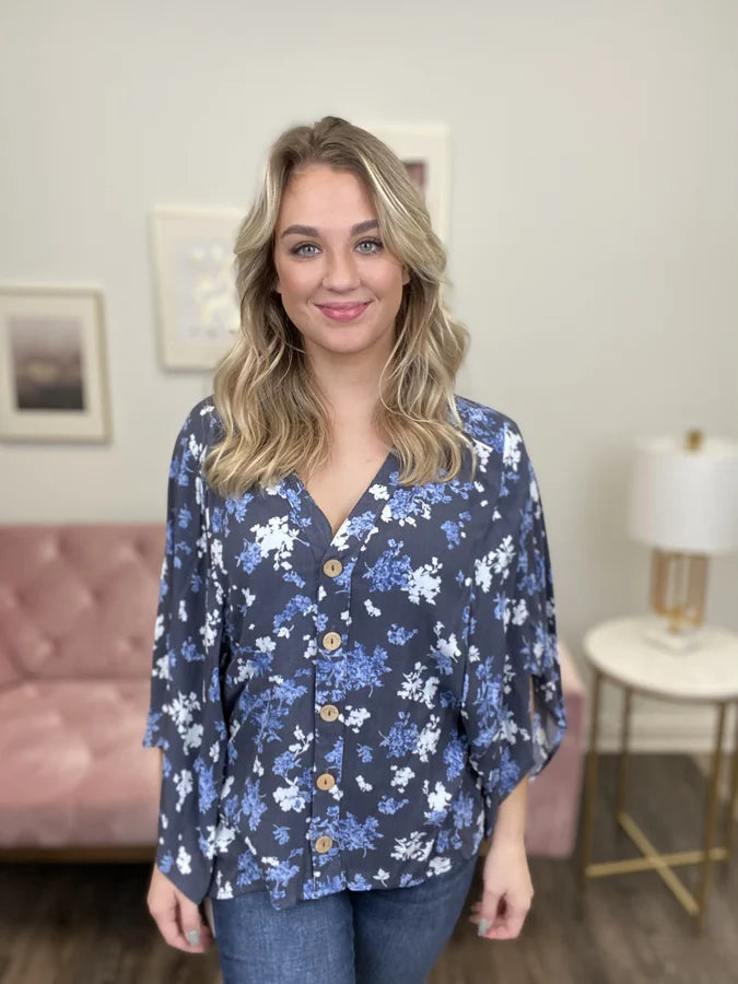The Yours To Keep Top by Oddi is a woven button down top, featuring a V-neck, 3/4 kimono sleeves, a hi-lo hemline, and a floral print. Light and airy, the Yours to Keep Top is the perfect top to throw on with a pair of denim and slides.